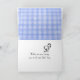 Cute Golden Retriever on blue and white gingham pattern with thank you text for pet sitting.
