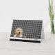Cute Golden Retriever on black and white gingham pattern with thank you text for pet sitting.