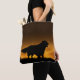 Golden retriever dog in silhouette to a golden sky dusk, dawn, sunset or sunrise dog lovers tote bag