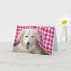Golden Retriever under tablecloth for birthday Card
