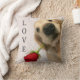 Add a little golden happiness to your home! This throw pillow features a photograph of a cute golden retriever dog who is holding a single red rose in his mouth. Text reads, "Love," but this can be deleted or personalized to suit your needs! Perfect for Valentine's Day, or any day at all!
