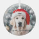 This wonderful Christmas design shows a sweet Golden Retriever wearing a red Santa hat.