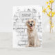 Golden retriever wearing sunglasses on brick pattern for getting older birthday humour.