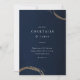 An elegant cocktail party invitation design by Stacey Meacham featuring deep blue textural background and gold cocktail rings. Perfect for business or personal events.