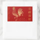 Un simple coq doré sur arrière - plan rouge avec des bordures de tuyauterie dorée et l'accueil en chinois pour ce sticker rectangulaire personnalisable de Nouvel An chinois 2017. Produits correspondants : carte de voeux, carte postale, invitations, timbre, enveloppes rouges et plus encore...— "Le coq (chinois simplifié : 鸡; chinois traditionnel : 雞/鷄) est l'un des 12 ans du cycle des animaux qui apparaissent dans le zodiaque chinois lié au calendrier chinois. L'année du coq est représentée par le 酉 de caractère de la branche terrestre. Le nom est également traduit en anglais sous le nom de poulet. Le coq est le seul oiseau inclus dans le zodiaque chinois." wikipedia