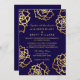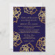 Golden Roses Wedding Invitation - Blue