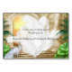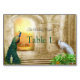 White and blue-green royal peacock wedding fantasy scenery in a tropical temple surrounded by greenery to personalize number and name cards for each quest on the table.