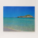 Golden sand beach with turquoise water & islet jigsaw puzzle