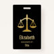 Personalized name badge with an image of golden scales on a black background. Simple and elegant.
