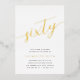 Celebrate her milestone birthday with these chic 60th birthday party invitations featuring "sixty" in modern gold foil hand sketched script lettering. Personalize with your party details beneath. A unforgettable, luxe choice for fabulous 60th birthday celebrations.