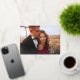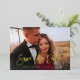 This elegant, shimmering wedding save the date card features an overlay of modern, gold foil script typography as an overlay for your favourite personal photo. There is more room for a short message on the back, so you can include more details about your wedding or a personal message to your guests.