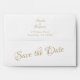 Golden Script Save the Date Return Address Wedding envelope. Personalize the envelope with the bride`s and groom`s names and the address. Change or erase the Save the date text. You can change the colour of the envelope to any colour you need - this golden script looks great on lighter colours. Great for your wedding, engagement and save the date mailing.