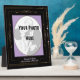 Turn a special photograph into a glossy plaque with its' own easel w/ Leslie Sigal Javorek's original faux frame designs. Arrangement of gold flourishes on black & the illusion of small amethysts gives this an Art Nouveau feel. A lilac mat & 2 Custom Text Fields complete the look. This is NOT a picture frame as your uploaded photo is permanently embedded, so be sure you like how your photo fits before ordering.