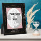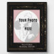 Turn a special photograph into a glossy plaque with its' own easel w/ Leslie Sigal Javorek's original faux frame designs. Arrangement of gold flourishes on black & the illusion of small diamonds gives this an Art Nouveau feel. A pink mat & 2 Custom Text Fields complete the look. This is NOT a picture frame as your uploaded photo is permanently embedded, so be sure you like how your photo fits before ordering.