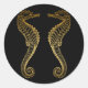 Golden Seahorse Sticker beautiful Silhouette of sea creature in gold on black background