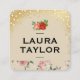 Golden Sequin Flower Pattern and Roses Square Business Card