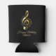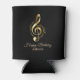 Modern shiny gold treble clef with notes on black background. Optional monogram