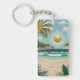 Dive into a fantastical tropical paradise where the sun's golden light transforms the world. This whimsical artwork captures a serene beach scene, where the sand shimmers with a soft, warm glow. Towering palm trees and majestic cliffs are not just silhouettes against the sky, but are rendered in pure gold, reflecting the radiant brilliance of the sun. The water gently laps at the shore, inviting you to step into a world of pure imagination and escape.