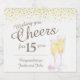 Anniversary sparkling wine glasses watercolor art wine labels. Edit these labels with your own couples name and anniversary year. Currently reads Wishing you cheers for 15 years Congratulations Jackie and John. Ideal for gifting sparkling wine in a personalized way. Watercolor art personalized labels in golden yellow and brown hues. © Unique watercolor art and graphic design by Sarah Trett. www.sarahtrett.com for www.mylittleeden.com