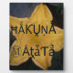 This artwork features a large, star-shaped flower in bright yellow as the central focus. Overlaying the flower are the words "HAKUNA" and "MATATA" in a stylized font. The composition is simple and direct, emphasizing the phrase's placement on the flower. The background is dark and blurry, providing a striking contrast to the bright yellow flower.