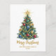 A charming Christmas card featuring a beautifully decorated holiday tree with colorful ornaments and a glowing star on top. Perfect for spreading festive cheer and warm holiday wishes.