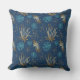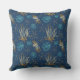 Golden Starfish & Coral Reef Pattern on Blue Throw Pillow