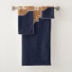 It was advertised as NAVY blue and the color sent was greenish blue. I am disappointed in this product. Quality and printing are great as are all my other orders. As you can see in picture the tea towel on right is perfect, hand towel not so much! Print was awesome and just as ordered