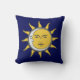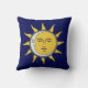 Golden Sun and Silver Moon on Navy Blue Throw Pillow