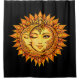 This striking sun-and-moon boho goddess artwork features a radiant golden winking face surrounded by fiery mandala rays. Symbolizing balance, intuition, and feminine strength, this piece represents harmony between day and night, mind and spirit. This beautiful black shower curtain is perfect for anyone drawn to celestial symbolism and unique spiritual art. | The matching bath mat is available in my store.