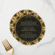 Celebrate your union with the vibrant spirit of Africa! This stunning round wedding menu card features a captivating geometric design in luxurious gold, deep black, and hints of glowing red, evoking a modern "tribal sunshine" vibe. It's the perfect piece of stationery to guide your guests through a culinary journey and set the tone for your unforgettable Afrocentric wedding celebration. Practical Two-Side Layout: