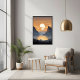 Immerse yourself in the captivating beauty of this AI-generated landscape artwork poster print that portrays a stunning sunset scene over a vast mountain range. The radiant golden sun sets between towering, jagged peaks, casting a warm, golden glow over the entire valley. The serene reflection of the sun on the calm waters below adds a sense of tranquillity and grandeur to the artwork. With its soft clouds, peaceful trees, and vivid yet soothing colours, this piece evokes a deep sense of calm and awe for nature’s raw beauty. This nature-inspired artwork Is the perfect addition to any home, office, or living space, bringing the outdoors inside with an unforgettable view of majestic mountains at dusk. Ideal for nature lovers, outdoor enthusiasts, or anyone seeking a peaceful yet dramatic scene to enhance their interior decor. Whether you're looking to complete your living room, bedroom, or office space, this piece will transform any wall with its breathtaking colours and composition. Perfect for occasions like housewarmings, anniversaries, and even birthdays, this artwork is designed for those who appreciate the splendour of the great outdoor.