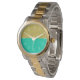 Watches are both functional and fashionable. Golden Sunset Waters features classic white numbers over a dual-colour face of aqua and gold. Classic elegance has never been more evident.