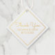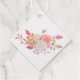 Elegant wedding favour gift tag done in white with gold foil custom text, on the front. The back has graphics of a lovely flower arrangement done in coral and gold. Personalize the text to read what you want.