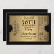 PALETTE DE COULEUR : noir et or COLLECTION DE DESIGN : 70e anniversaire pour votre grand-père, grand-mère, mère, père, tante ou oncle favori pour atteindre cet âge jalon. Cette invitation à la fête des talons de ciné moderne et hollywoodienne de style premier, élégante, est parfaite pour votre célébration de toute sorte. La mise en page du style typographique est particulièrement facile à remplir dans le modèle avec vos détails personnalisés. Un look métallique doré a été réalisé sous forme graphique pour ajouter une touche d'élégance et de sophistication.