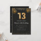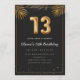 Adorable 13th birthday party invitation in a black and gold balloons design with golden tropical palm leaves. Customize with your party details and mail out to family and friends inviting them to celebrate the 13th birthday with style!