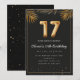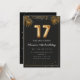 Adorable 17th birthday party invitation in a black and gold balloons design with golden tropical palm leaves. Customize with your party details and mail out to family and friends inviting them to celebrate the 17th birthday with style!