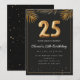Adorable 25th birthday party invitation in a black and gold balloons design with golden tropical palm leaves. Customize with your party details and mail out to family and friends inviting them to celebrate the 25th birthday with style!