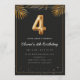 Luxury Golden Tropical Palm Leaves 4th Birthday Party Invitation.