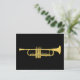 This postcard features a music theme - an illustrated golden trumpet showing details of the instrument against a background whose colour you can change, and text that is customizable.