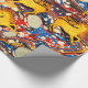 GOLDEN UNICORNS ,RED BLUE MARBLED EFFECTS ,CIRCLES WRAPPING PAPER