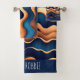 Golden Wave Blue Watercolor Abstract Pattern Bath Towel Set