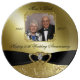 A Digitalbcon Images Design featuring a Black Satin Ribbon and Gold Glitter Flourish Frame theme with a variety of custom images, shapes, patterns, styles and fonts in this one-of-a-kind "Golden Wedding Anniversary" Photo Porcelain Plate. This elegant and attractive design comes with customizable Photo image and text lettering on the front and is sure to create years of enjoyment in viewing all your memorable photos on your special Golden Wedding Anniversary. THIS DESIGN IS ALSO AVAILABLE IN COMPLEMENTARY PRODUCTS SUCH AS PHOTO INVITATIONS, THANK YOU NOTES, BINDERS, ORNAMENTS, BUTTONS AND STICKERS, TO COMPLETE YOUR SPECIAL EVENT.
