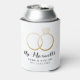 Class up that can with a fully personalized koozie featuring interlocked golden rings and your wedding details that is the perfect favour for your wedding guests.