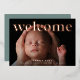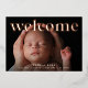 Fresh and modern birth announcement cards feature a full bleed horizontal or landscape oriented photo with "welcome" overlaid across the top in rose gold foil lettering. Personalize with baby's name and birth stats at the bottom, and add three additional photos to the back, along with a personal message.