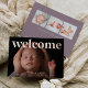Fresh and modern birth announcement cards feature a full bleed horizontal or landscape oriented photo with "welcome" overlaid across the top in rose gold foil lettering. Personalize with baby's name and birth stats at the bottom, and add three additional photos to the back, along with a personal message.