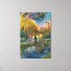 Golden Willow tree at sunset by the pond Canvas Print