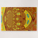 Warm Gradient Background: Transitioning between shades of orange and yellow, the background complements the golden yellow of the glove, enhancing the retro vibe.