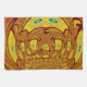 Warm Gradient Background: Transitioning between shades of orange and yellow, the background complements the golden yellow of the glove, enhancing the retro vibe.