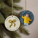 Golden Yellow Bow Baby's First Christmas Photo Ceramic Ornament