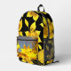 Golden yellow decorative floral design AI art generated created by Zenya Zenyaris 2024. The bright floral design is great on this backpack, it makes it feel lighter, easier to carry, and enjoy it. Yellow colour represents joy and happiness, so is good to have around!